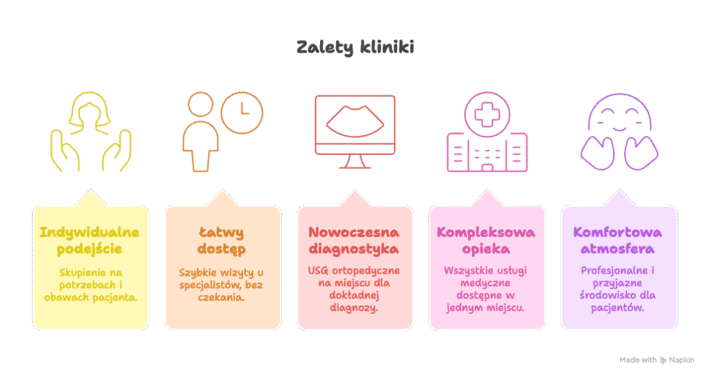 - nowoczesna diagnostyka na miejscu (USG ortopedyczne),